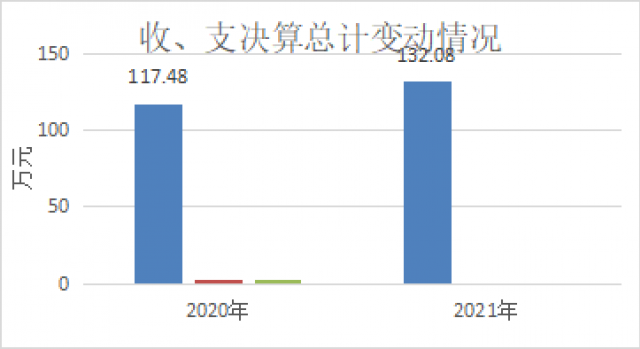 2021年度收、支总计132.08万元。与2020年相比,收、支总计各增加14.6,增长12.43%。主要变动原因是人员正常增减变化。