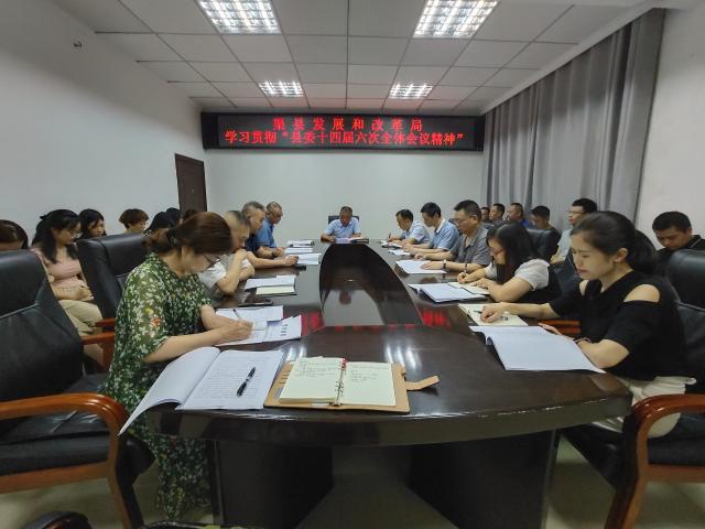 7月28日,县发改局召开全体干部职工会议,学习贯彻县委十四届六次全会精神。县发改局党委书记、局长李峰主持会议。
