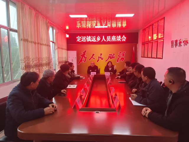 近日,定远镇在二楼会议室迎来了一场温馨而意义非凡的返乡人员座谈会,此次活动旨在为大家提供一个沟通交流、互帮互助、共谋发展的平台,开启携手共建幸福家园的新起点、新开端。