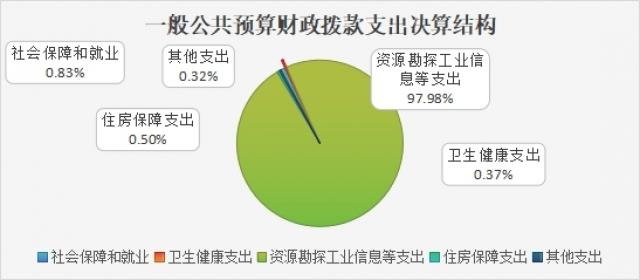 2024年一般公共预算财政拨款支出2156.28万元,主要用于以下方面:社会保障和就业(类)支出17.99万元,占0.83%;卫生健康支出7.93万元,占0.37%;资源勘探工业信息等支出2112.82万元,占97.98%;住房保障支出10.68万元,占0.50%;其他支出6.85万元,占0.32%。