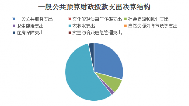 2024年度一般公共预算财政拨款支出2704.05万元,主要用于以下方面:一般公共服务支出787.41万元,占29.12%;文化旅游体育与传媒支出4.5万元,占0.17%;社会保障和就业支出220.23万元,占8.14%;卫生健康支出56.85万元,占2.1%;农林水支出1549.7万元,占57.31%;自然资源海洋气象等支出2.88万元,占0.11%;住房保障支出81.47万元,占3.02%;灾害防治及应急管理支出1万元,占0.04%;