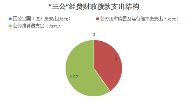 2024年度“三公”经费财政拨款支出决算中,因公出国(境)费支出决算0万元,占0%;公务用车购置及运行维护费支出决算3万元,占40.16%;公务接待费支出决算4.47万元,占59.84%。具体情况如下: