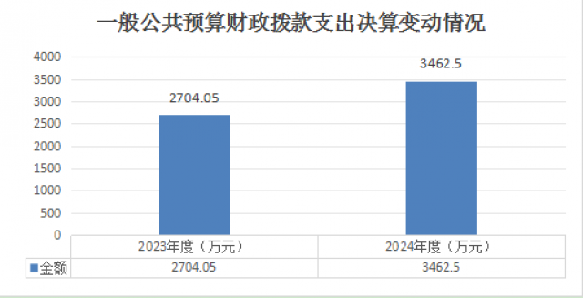 2024年度一般公共预算财政拨款支出2704.05万元,占本年支出合计的96.47%。与2023年度相比,一般公共预算财政拨款支出减少758.45万元,下降21.9%。主要变动原因是项目及人员经费减少。