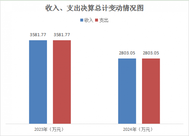 2024年度收入、支出总计均为2803.05万元。与2023年度相比,收入、支出总计各减少778.72万元,下降21.74%。主要变动原因是项目及人员经费减少。