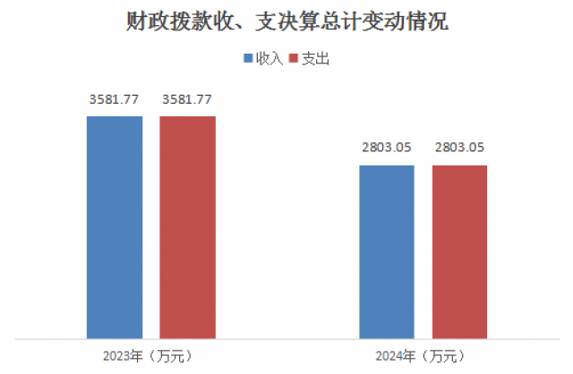 2024年度财政拨款收入、支出总计均为2803.05万元。与2023年度相比,财政拨款收入总计、支出总计各减少778.72万元,下降21.74%。主要变动原因是项目及人员经费减少。