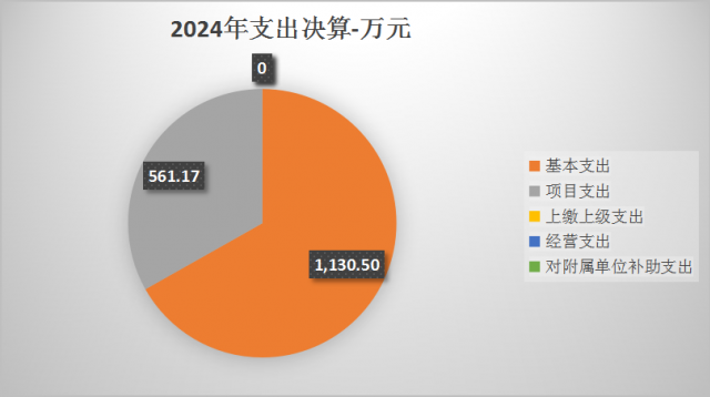 2024年度本年支出合计1691.72万元,其中:基本支出1130.50万元,占66.83%;项目支出561.17万元,占33.17%。