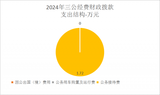 2024年度“三公”经费财政拨款支出决算为1.72万元,与2023年相比减少0.22万元,下降11.19%。其中,公务接待费支出1.72万元,与2023年相比减少0.22万元,下降11.19%;公务用车购置及运行维护费支出为零。具体情况如下:
