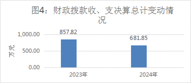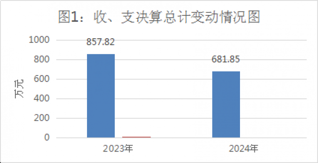 2024年度收、支总计均为681.85万元。与2023年相比,收、支总计各减少175.96万元,下降20.51%。主要变动原因:2024年减少食品安全监督抽检经费100万元。