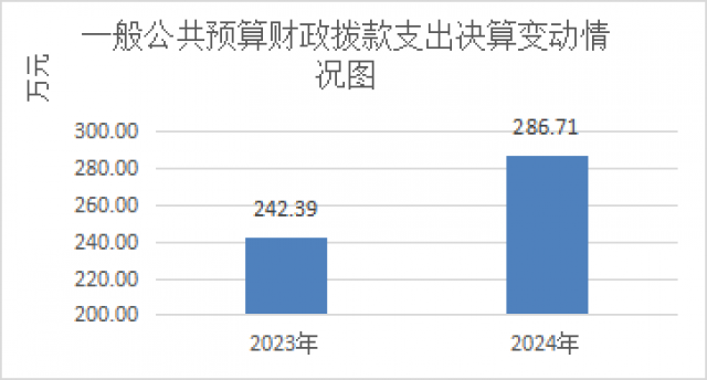 2024年一般公共预算财政拨款支出286.71万元,占本年支出合计的52.02%。与2023年相比,一般公共预算财政拨款支出增加44.32万元,增长18.28%。主要变动原因是2024年丧葬抚恤资金增加22万元。