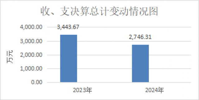 2024年度收、支总计均为2,746.31万元。与2023年相比,收、支总计各减少697.36万元,下降20.25%。主要变动原因是专项经费减少。