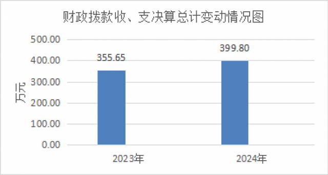2024年度收、支总计均为399.80万元。与2023年相比,收、支总计各增加44.15万元,增长12.41%。主要变动原因是本年度增加特殊人员补助。