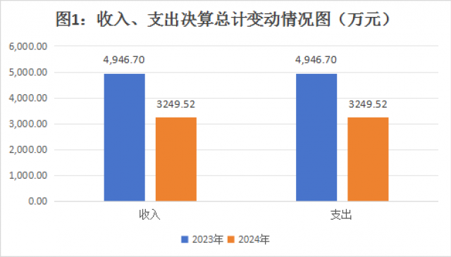 2024年度收入、支出总计均为3249.52万元。与2023年度相比,收入、支出总计各减少1697.18万元,下降34.31%。主要变动原因是重点项目支出减少。