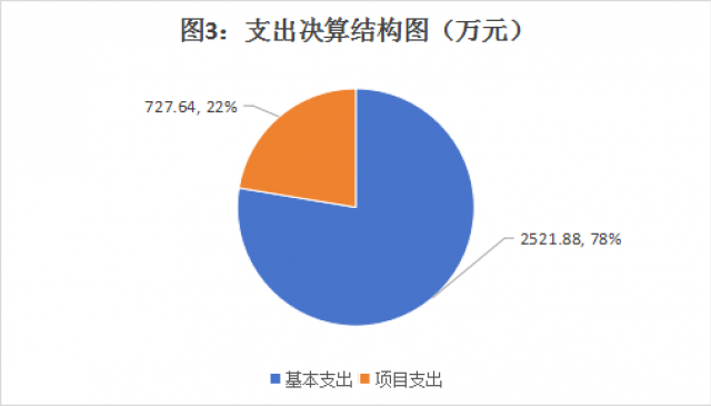 2024年度本年支出合计3249.52万元,其中:基本支出2521.88万元,占77.61%;项目支出727.64万元,占22.39%。(注:仅罗列本部门涉及的支出)