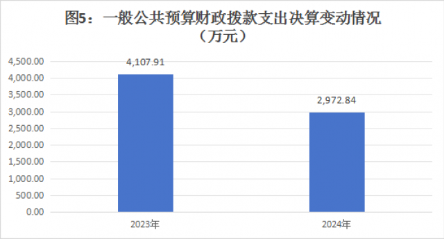 2024年度一般公共预算财政拨款支出2972.84万元,占本年支出合计的91.49%。与2023年度相比,一般公共预算财政拨款支出减少1135.07万元,下降27.63%。主要变动原因是重点项目支出减少。