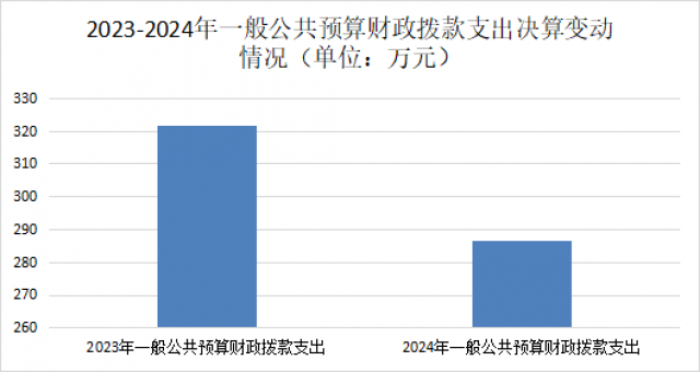 2024年度一般公共预算财政拨款支出286.5万元,占本年支出合计的100%。与2023年度相比,一般公共预算财政拨款支出减少35.21万元,下降12.3%。主要变动原因是一般公共服务支出减少31.21万元。