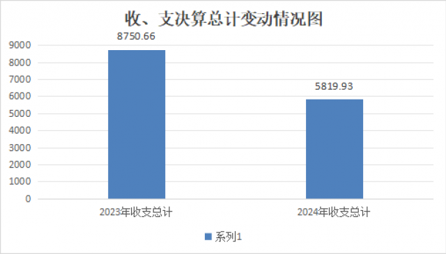 2024年度收、支总计均为5819.93万元。与2023年度8750.66万元相比,收、支总计各减少2930.73万元,减少33.49%。主要变动原因是2024年项目支出减少。