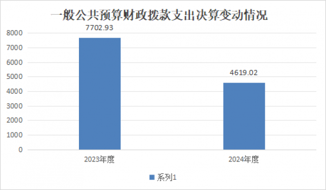 2024年度一般公共预算财政拨款支出4619.02万元,占本年支出合计的79.37%。与2023年度相比,一般公共预算财政拨款支出减少3083.91万元,减少40.04%。主要变动原因是2024年度项目支出减少。