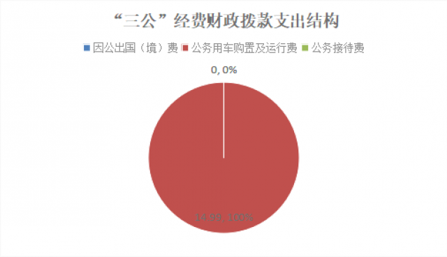 2024年度“三公”经费财政拨款支出决算中,因公出国(境)费支出决算0万元,占0%;公务用车购置及运行维护费支出决算14.99万元,占100.00%;公务接待费支出决算0万元,占0%。具体情况如下: