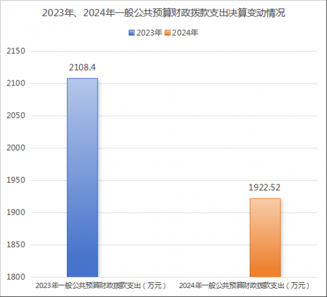 2024年度一般公共预算财政拨款支出1922.52万元,占本年支出合计的61.34%。与2023年度相比,一般公共预算财政拨款支出减少185.88万元,减少8.82%。主要变动原因是农林水支出及农村综合改革的开支减少。