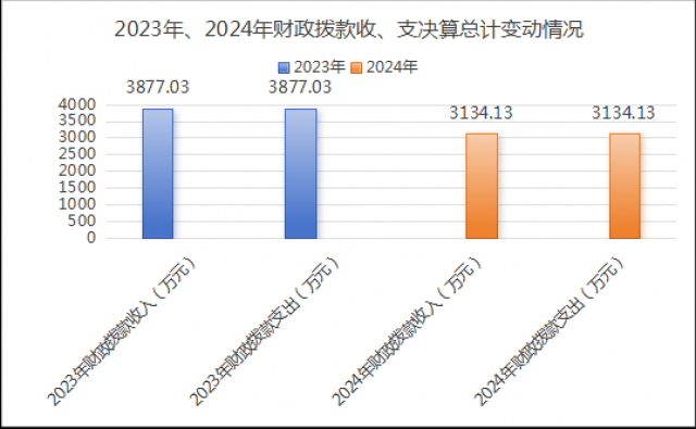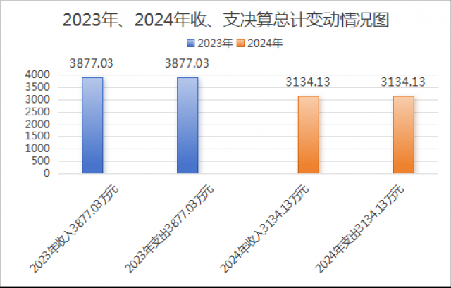 2024年度收、支总计均为3134.13万元。与2023年度相比,收、支总计各减少742.90万元,下降19.16%。主要变动原因是一般公共预算财政拨款收入减少。