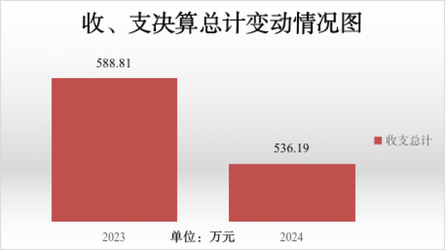 2024年度收入、支出总计均为536.19万元。与2023年度相比,收入、支出总计各减少52.62万元,下降8.9%。