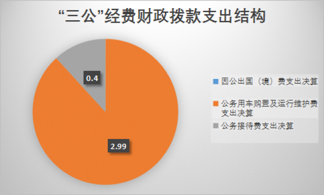 2024年度“三公”经费财政拨款支出决算中,因公出国(境)费支出决算0万元,占0%;公务用车购置及运行维护费支出决算2.99万元,占88.2%;公务接待费支出决算0.4万元,占11.8%。具体情况如下: