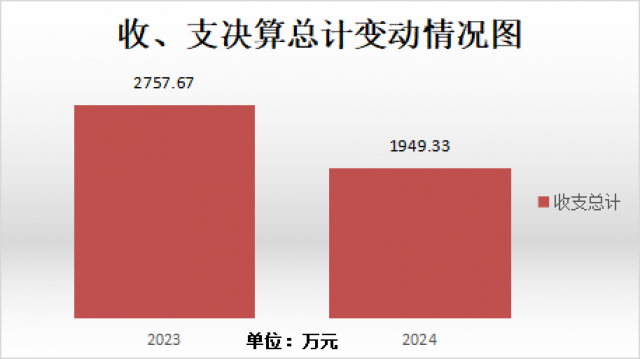 2024年度收入、支出总计均为1,949.33万元。与2023年度相比,收入、支出总计各减少808.34万元,下降29.3%。主要变动原因是本年财政安排资金进行了压减。