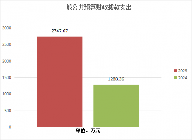 2024年度一般公共预算财政拨款支出1,288.36万元,占本年支出合计的66.1%。与2023年度相比,一般公共预算财政拨款减少1,459.31万元,下降53.1%。主要变动原因是本年各项支出进行了压减。