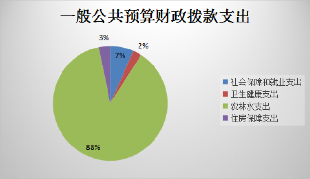 2024年度一般公共预算财政拨款支出110.3万元,主要用于以下方面:社会保障和就业支出7.36万元,占6.7%;卫生健康支出2.67万元,占2.4%;农林水支出96.68万元,占87.6%;住房保障支出3.58万元,占3.2%。