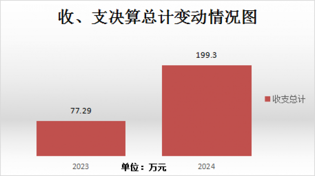 2024年度收入、支出总计均为199.3万元。与2023年度相比,收入、支出总计各增加122.01万元,增长157.9%。主要变动原因是本年度收入增加。