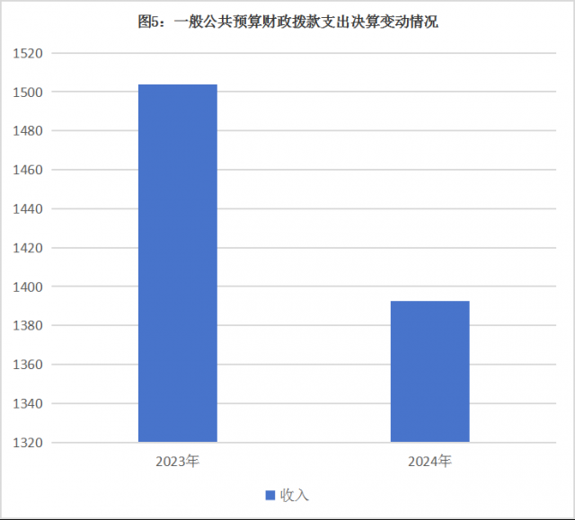 2024年度一般公共预算财政拨款支出1392.38万元,占本年支出合计的80.25%。与2023年度相比,一般公共预算财政拨款支出减少111.46万元,下降7.4%。主要变动原因是人员经费减少。