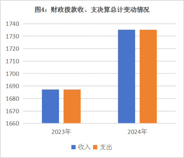 2024年度财政拨款收入、支出总计均为1735.12万元。与2023年度相比,财政拨款收入总计、支出总计各增加47.94万元,增长2.84%。主要变动原因是政府性基金预算支出增加。