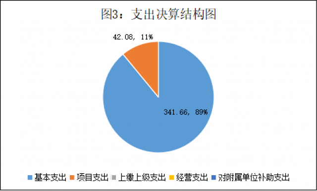2024年度本年支出合计383.74万元,其中:基本支出341.66万元,占87%;项目支出42.08万元,占13%;上缴上级支出0万元,占0%;经营支出0万元,占0%;对附属单位补助支出0万元,占0%。