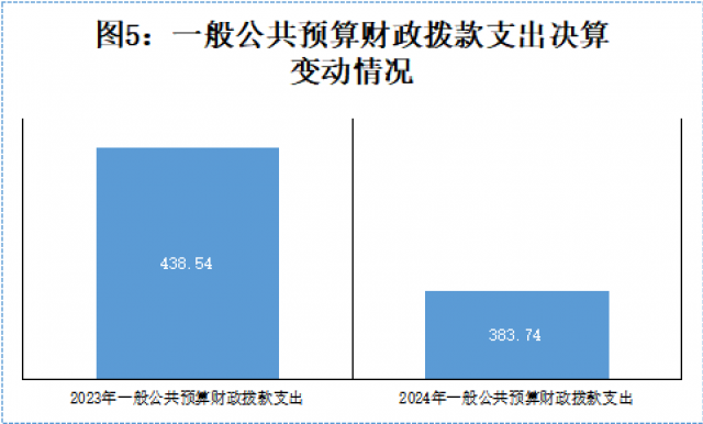 2024年度一般公共预算财政拨款支出383.74万元,占本年支出合计的100%。与2023年度相比,一般公共预算财政拨款支出减少54.8万元,减少11.4%。主要变动原因是人员减少。