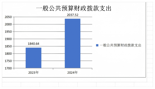 2024年度一般公共预算财政拨款支出2037.52万元,占本年支出合计的100%。与2023年度相比,一般公共预算财政拨款支出增加196.88万元,增长10.7%。主要变动原因是增加人员调资经费。