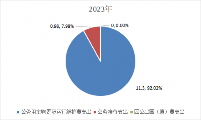 2024年度“三公”经费财政拨款支出决算中,因公出国(境)费支出决算0万元,占0%;公务用车购置及运行维护费支出决算11.3万元,占92.02%;公务接待费支出决算0.98万元,占7.98%。具体情况如下: