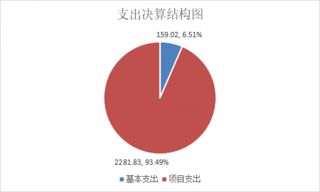 2024年度本年支出合计2440.85万元,其中:基本支出159.02万元,占6.51%;项目支出2281.83万元,占93.49%。(注:仅罗列本部门涉及的支出)