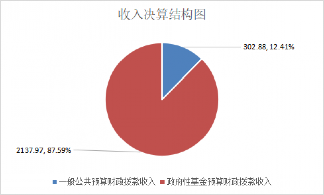 2024年度本年收入合计2440.85万元,其中:一般公共预算财政拨款收入302.88万元,占12.41%;政府性基金预算财政拨款收入2137.97万元,占87.59%。(注:仅罗列本部门涉及的收入)
