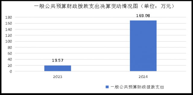 2024年度一般公共预算财政拨款支出169.08万元,占本年支出合计的49.72%。与2023年度相比,一般公共预算财政拨款支出增加149.51万元,增长763.97%。主要变动原因是12名调动人员工资2023年度在原单位发放,2024年度在我单位发放。