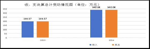 2024年度收入、支出总计均为340.08万元。与2023年度相比,收入、支出各增加140.51万元,增长70.41%。主要变动原因是12名调动人员工资2023年度在原单位发放,2024年度在我单位发放。