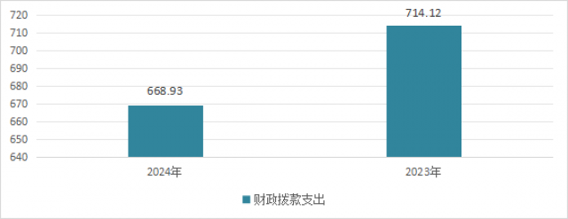 2024年财政拨款收、支总计668.93万元。与2023年相比,财政拨款收、支总计各减少45.19万元,减少6.33%。主要变动原因是系财政决算口径变化以及项目预算减少。