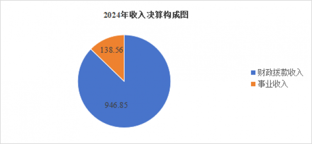 2024年度本年收入合计1085.41万元,其中:一般公共预算财政拨款收入946.85万元,占87.23%;政府性基金预算财政拨款收入0万元,占0%;国有资本经营预算财政拨款收入0万元,占0%;上级补助收入0万元,占0%;事业收入138.56万元,占12.77%;经营收入0万元,占0%;附属单位上缴收入0万元,占0%;其他收入0万元,占0%。