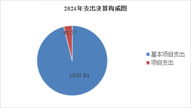 2024年度本年支出合计1085.41万元,其中:基本支出1043.84万元,占96.17%;项目支出41.57万元,占3.83%;上缴上级支出0万元,占0%;经营支出0万元,占0%;对附属单位补助支出0万元,占0%。
