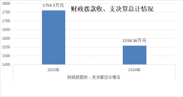 2024年度财政拨款收入、支出总计均为1558.36万元。与2023年度相比,财政拨款收入总计、支出总计各减少200.94万元,下降11.42%。主要变动原因是本年度人员经费减少。