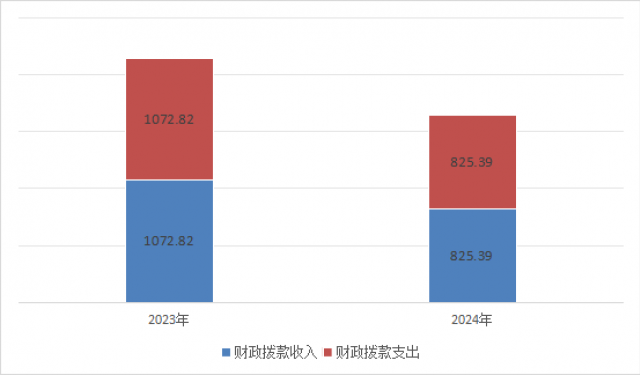2024年度财政拨款收入、支出总计均为825.39万元。与2023年度相比,财政拨款收入总计、支出总计各减少247.43万元,下降29.98%。主要变动原因是人员经费有所减少。