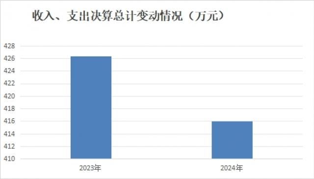 2024年度收、支总计416.01万元。其中人员经费230.37万元,公用经费20.04万元,项目经费165.60万元。与2023年相比,收、支总计各减少10.31万元,减少2.4%。主要变动原因是项目经费缩减。