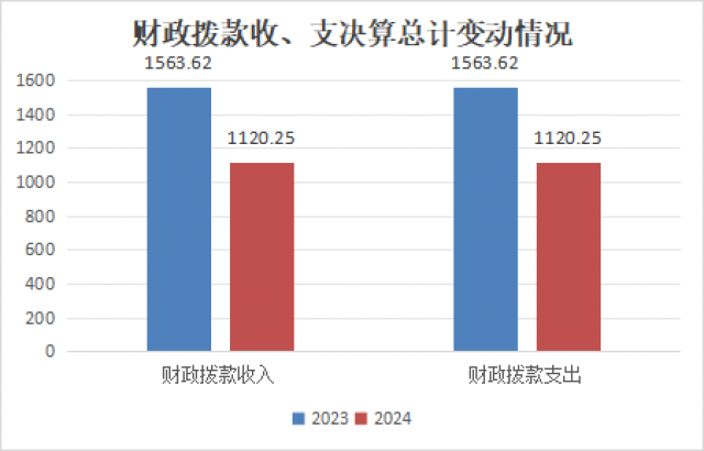 2024年度财政拨款收入、支出总计均为1120.25万元。与2023年度相比,财政拨款收入总计、支出总计各减少443.37万元,下降28.36%。主要变动原因是财政预算投入减少,实行定额补助。