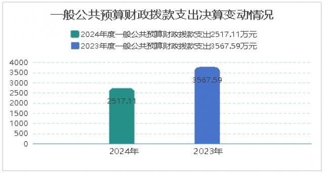 2024年度一般公共预算财政拨款支出2517.11万元,占本年支出合计的96.36%。与2023年度相比,一般公共预算财政拨款支出减少1050.48万元,下降41.73%。主要变动原因是项目及人员变动经费减少。