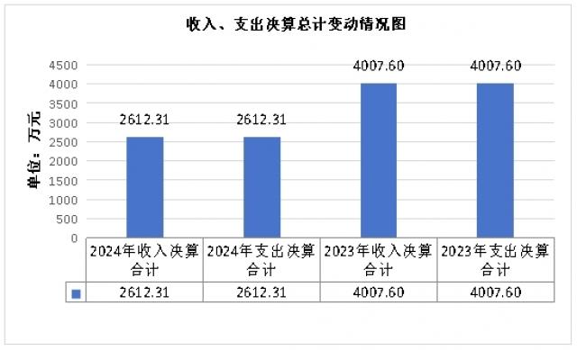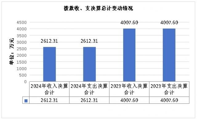 2024年度收、支总计均为2612.31万元。与2023年度相比,收、支总计各减少1395.29万元,下降34.82%。主要变动原因是项目及人员变动经费减少。