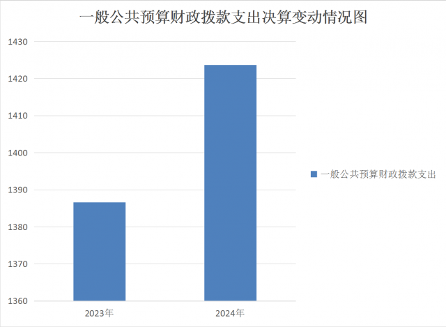 2024年度一般公共预算财政拨款支出1423.65万元,占本年支出合计的94.37%。与2023年度相比,一般公共预算财政拨款支出增加37.02万元,增长2.67%。主要变动原因是人员类支出随着社会经济的发展同步自然增长。